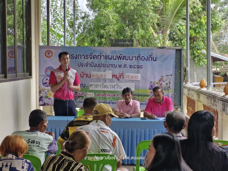 รายละเอียด : นายนิวัติ มูลมณี นายกเทศมนตรีตำบลดงแดง พร้อมด้วยคณะผู้บริหาร พนักงานเจ้าหน้าที่เทศบาลตำบลดงแดง ลงพื้นที่โครงการจัดทำแผนพัฒนาท้องถิ่น ประจำปีงบประมาณ พ.ศ.2568 เพื่อส่งเสริมการมีส่วนร่วมของประชาชน และชุมชนในเขตพื้นที่ ตำบลดงแดง ให้ประชาชนสามารถแสดงความคิดเห็น เสนอปัญหา ความต้องการของหมู่บ้านเพื่อให้สอดคล้องกับยุทธศาสตร์ที่วางไว้ ให้สามารถแก้ปัญหาและตรงกับความต้องการของประชาชนได้ทันต่อบริบทที่เปลี่ยนแปลงได้