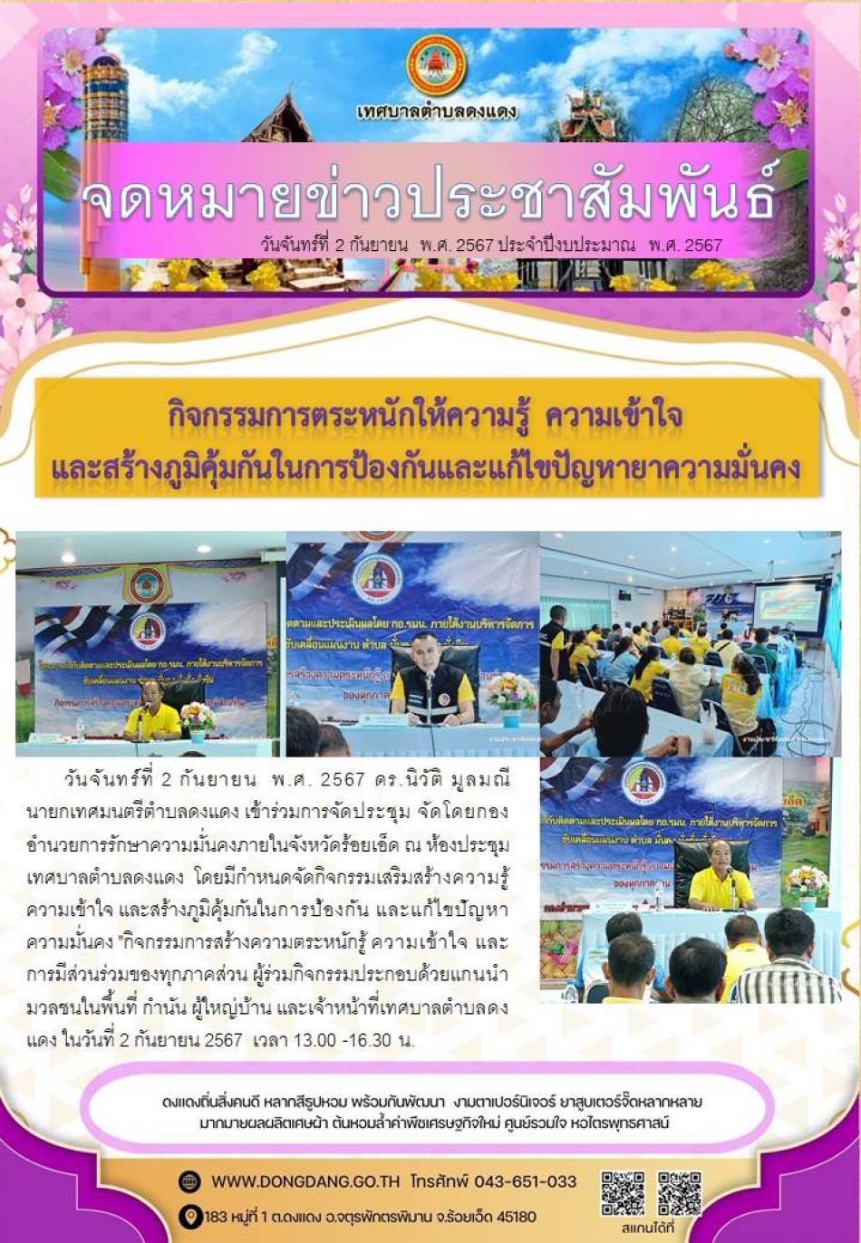 กิจกรรมการตระหนักให้ความรู้ ความเข้าใจ และสร้างภูมิคุ้มกันในการป้องกันและแก้ไขปัญหายาความมั่นคง [2 กันยายน 2567]