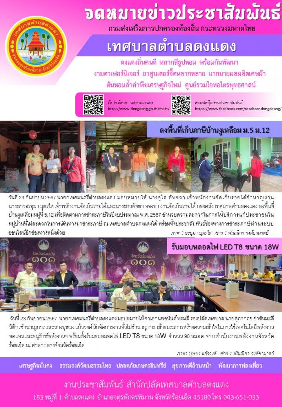 ลงพื้นที่เก็บภาษีบ้านงูเหลือม ม.5 ม.12 รับมอบหลอดไฟ LED T8 ขนาด 18W [23 กันยายน 2567]