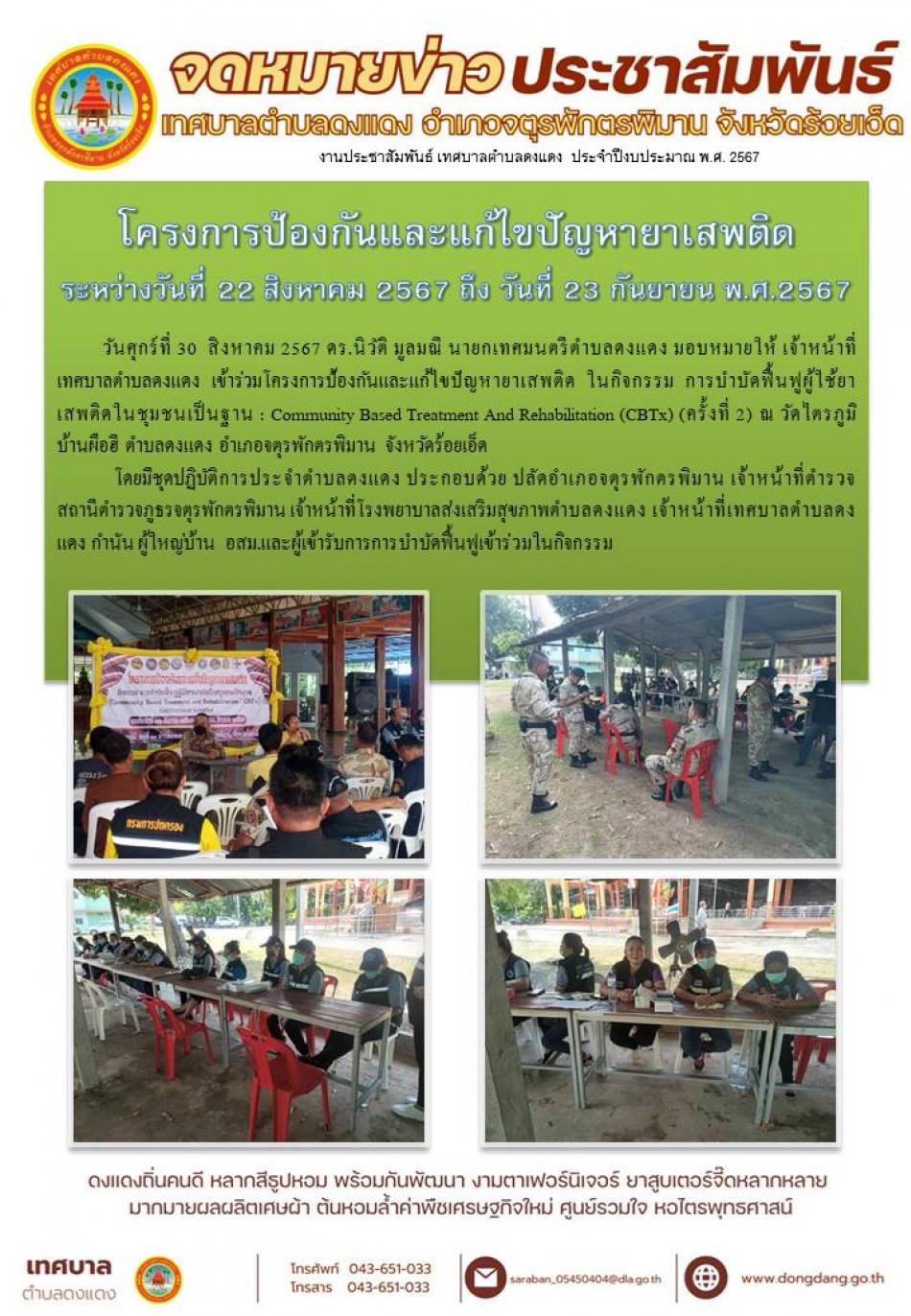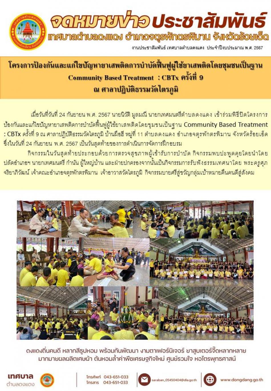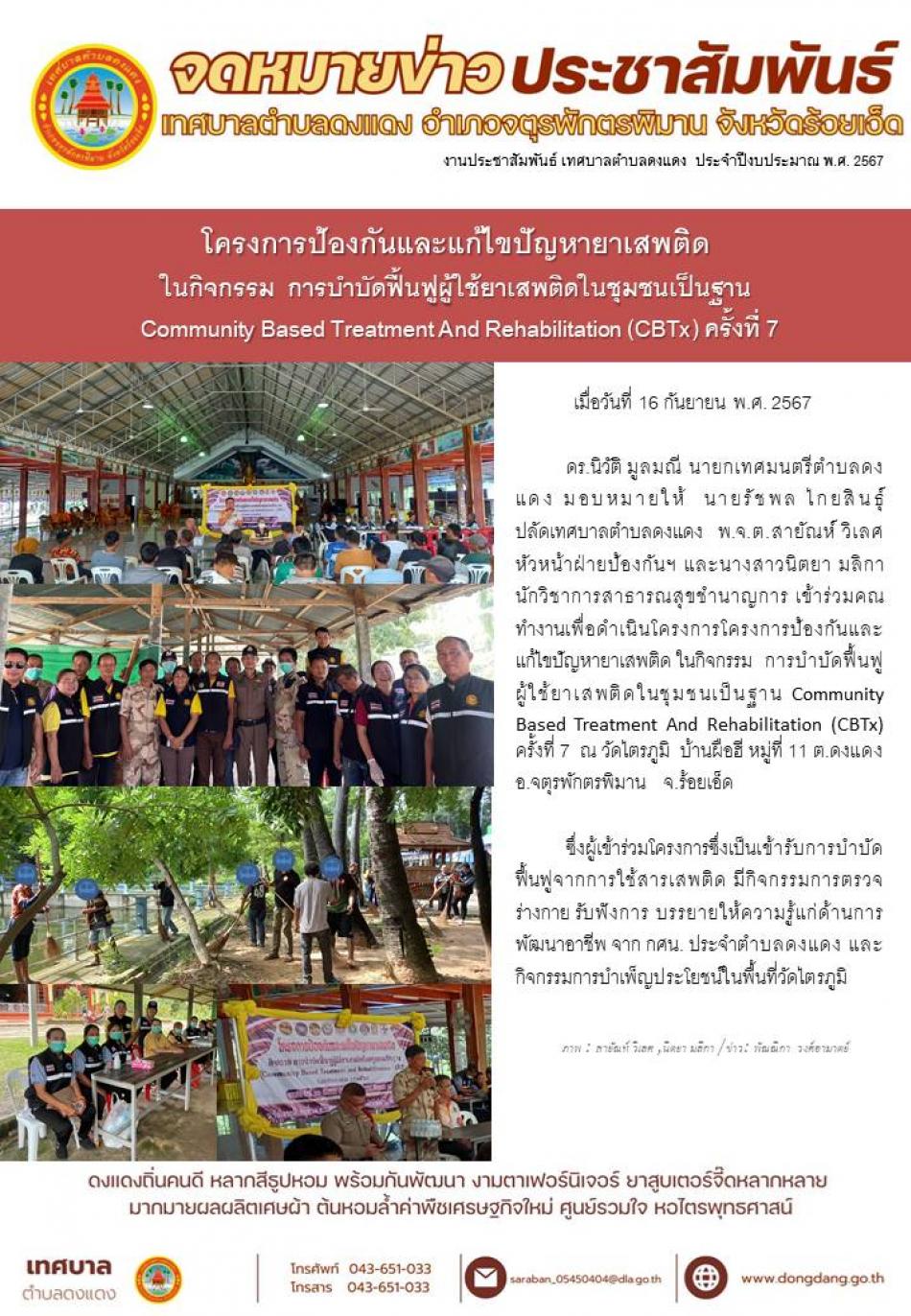 โครงการป้องกันและแก้ไขปัญหายาเสพติด ในกิจกรรม การบำบัดฟื้นฟูผู้ใช้ยาเสพติดในชุมชนเป็นฐาน Community Based Treatment And Rehabilitation (CBTx) ครั้งที่ 7 [16 กันยายน 2567]