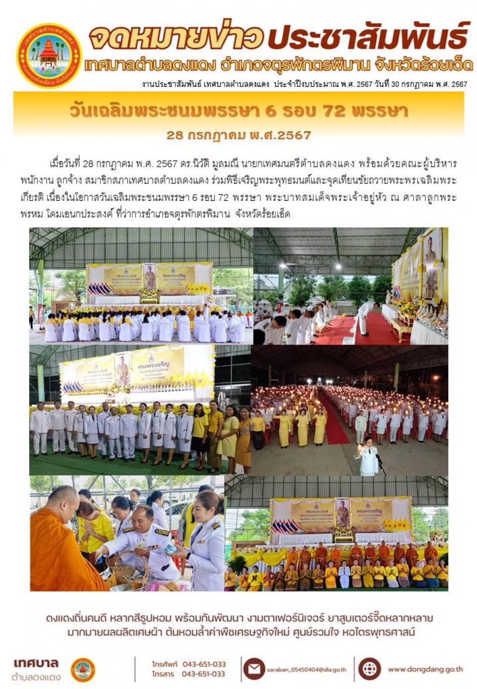 วันเฉลิมพระชนมพรรษา 6 รอบ 72 พรรษา 28 กรกฎาคม พ.ศ.2567 [28 กรกฎาคม 2567]