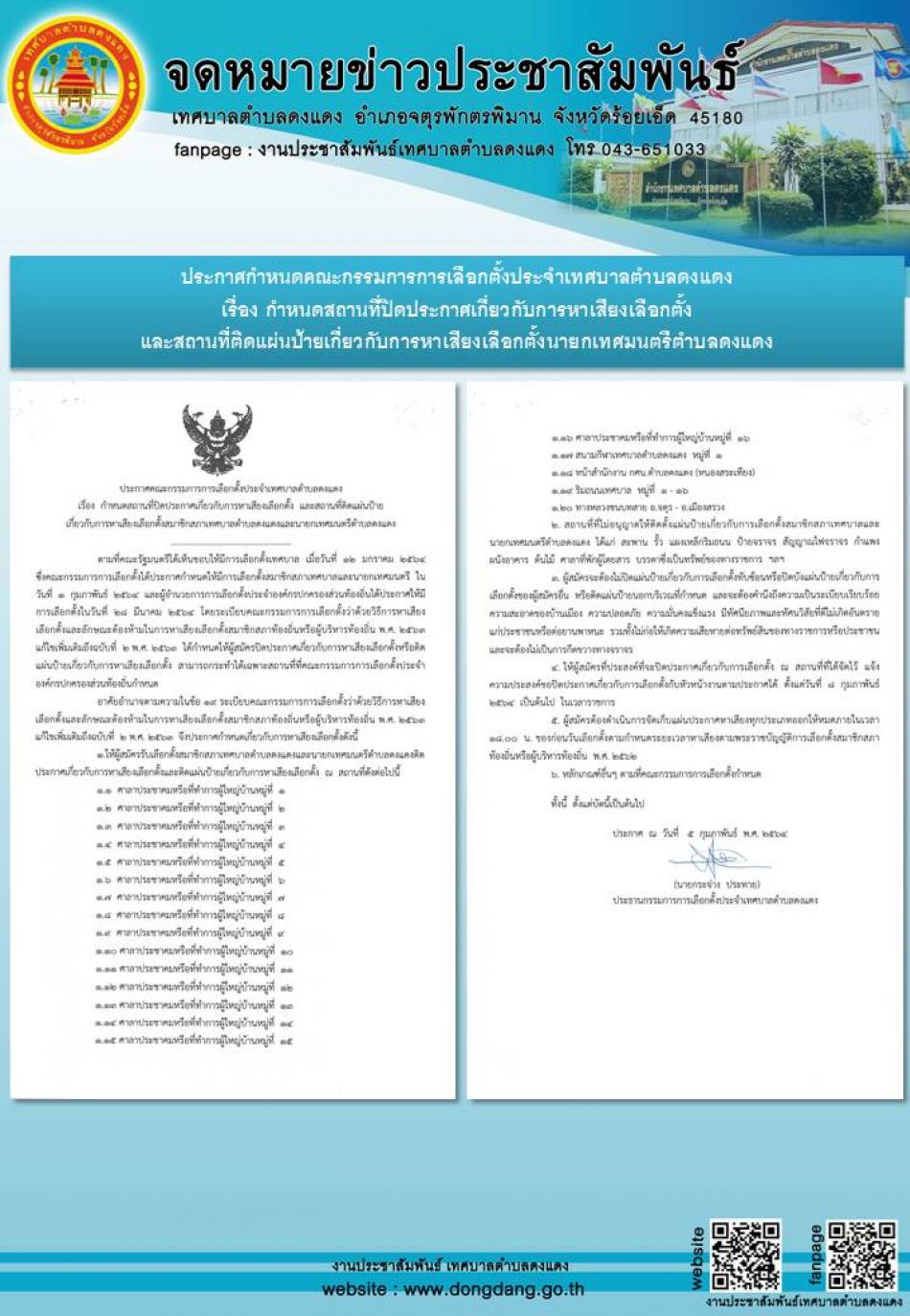 ประกาศคณะกรรมการการเลือกตั้ง กำหนดสถานที่ปิดประกาศเกี่ยวกับการหาเสียงเลือกตั้ง และสถานที่ติดแผ่นป้าย [17 สิงหาคม 2565]