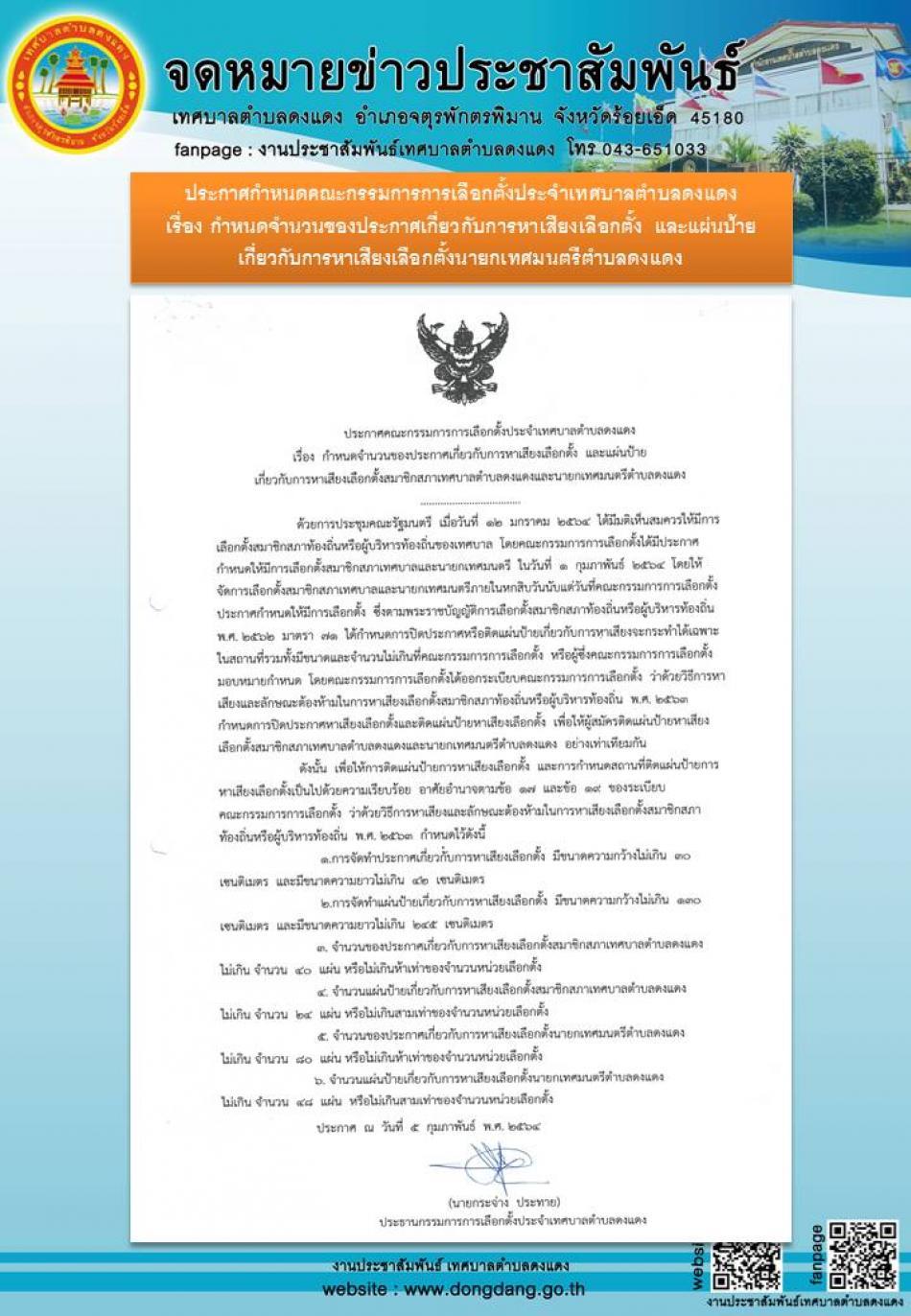 ประกาศคณะกรรมการการเลือกตั้ง เรื่องกำหนดจำนวนของประกาศเกี่ยวกับการหาเสียงเลือกตั้ง และแผ่นป้าย เกี่ยวกับการหาเสียงเลือกตั้ง [17 สิงหาคม 2565]