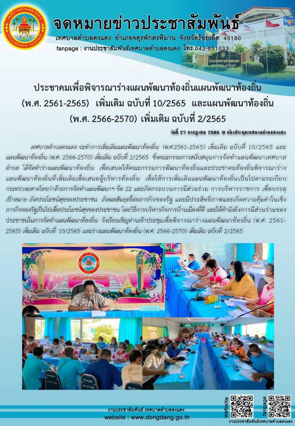 ประชาคมเพื่อพิจารณาร่างแผนพัฒนาท้องถิ่นแผนพัฒนาท้องถิ่น วันที่ 27 กรกฎาคม 2565 [27 กรกฎาคม 2565]
