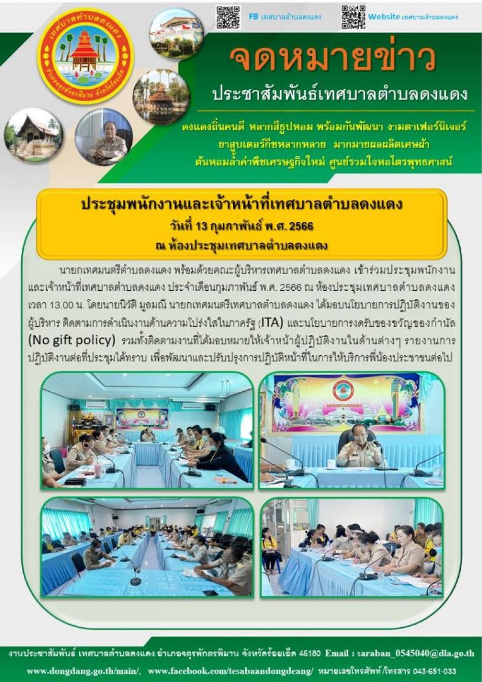 ประชุมพนักงานและเจ้าหน้าที่เทศบาลตำบลดงแดง วันที่ 13 กุมภาพันธ์ พ.ศ. 2566 [14 กุมภาพันธ์ 2566]