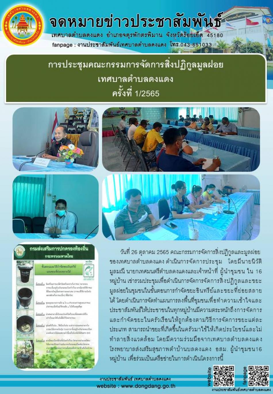 การประชุมคณะกรรมการจัดการสิ่งปฏิกูลมูลฝอย เทศบาลตำบลดงแดง ครั้งที่ 1/2565 [26 ตุลาคม 2565]