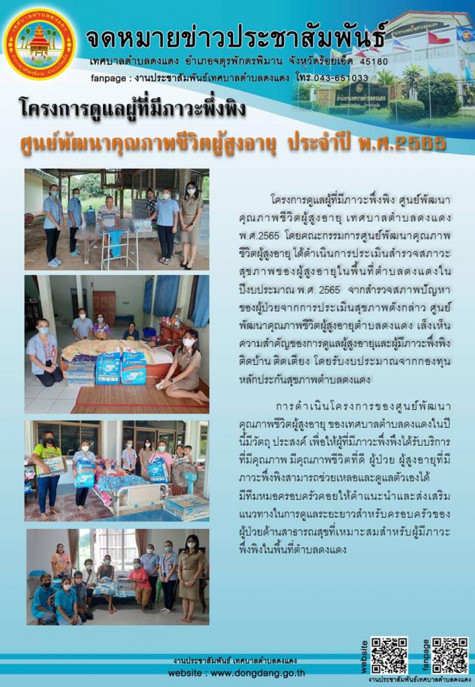 โครงการดูแลผู้ที่มีภาวะพึ่งพิง ศูนย์พัฒนาคุณภาพชีวิตผู้สูงอายุ ประจำปี พ.ศ.2565 [27 ตุลาคม 2565]