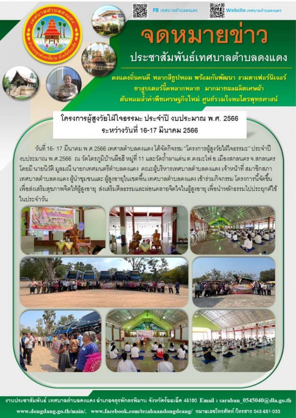 โครงการผู้สูงวัยใฝ่ใจธรรมะ ประจำปี งบประมาณ พ.ศ. 2566 ระหว่างวันที่ 16-17 มีนาคม 2566 [20 มีนาคม 2566]