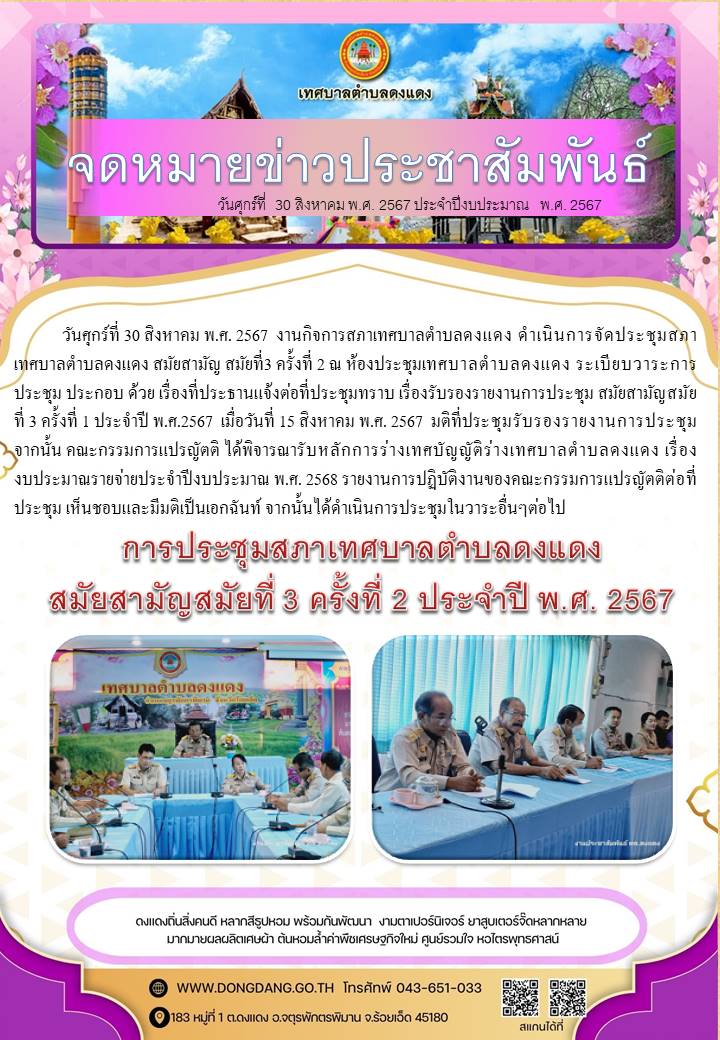 ประชุมสภาเทศบาลตำบลดงแดง สมัยสมัญ สมัยที่ 3 ครั้งที่ 2 ประจำปี พ.ศ.2567
