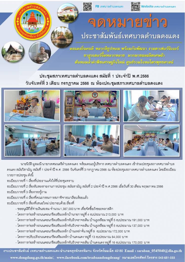 ประชุมสภาเทศบาลตำบลดงแดง สมัยที่ 1 ประจำปี พ.ศ.2566 วันจันทร์ที่ 3 เดือน กรกฎาคม 2566 ณ ห้องประชุมสภาเทศบาลตำบลดงแดง