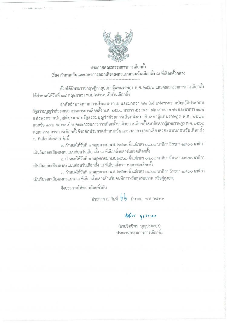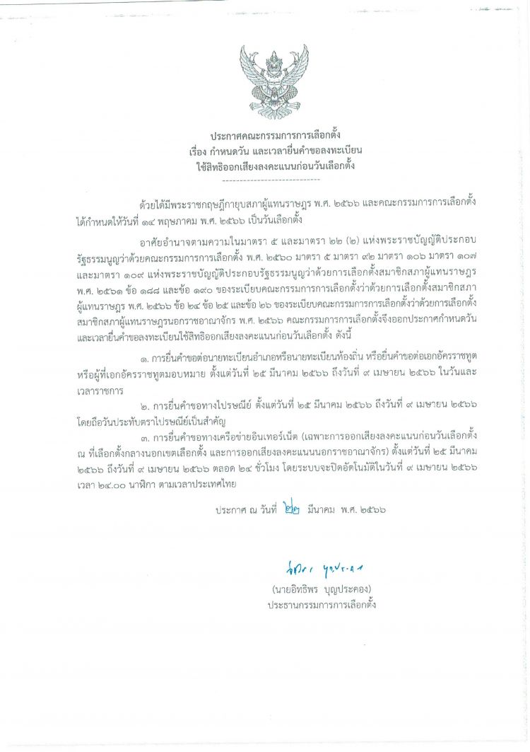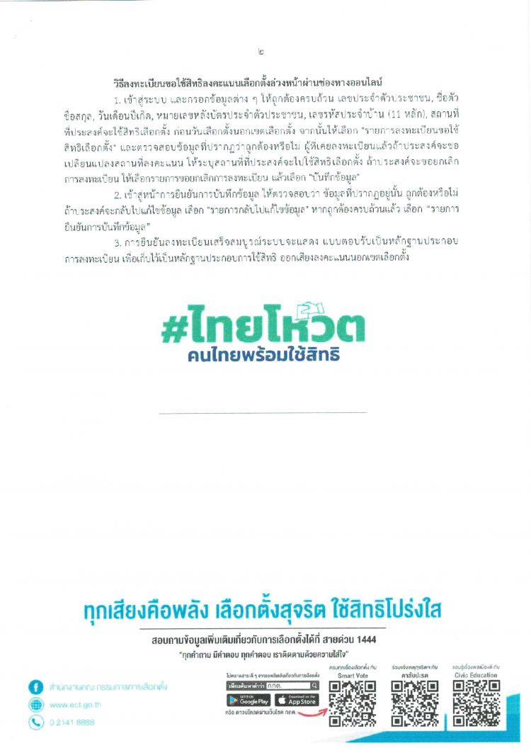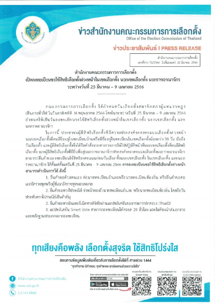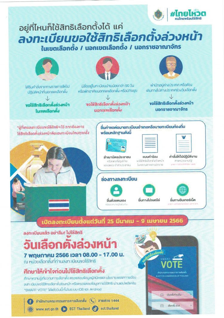 ประชาสัมพันธ์การเปิดลงทะเบียนขอใช้สิทธิเลือกตั้งล่วงหน้าในเขตเลือกตั้ง
