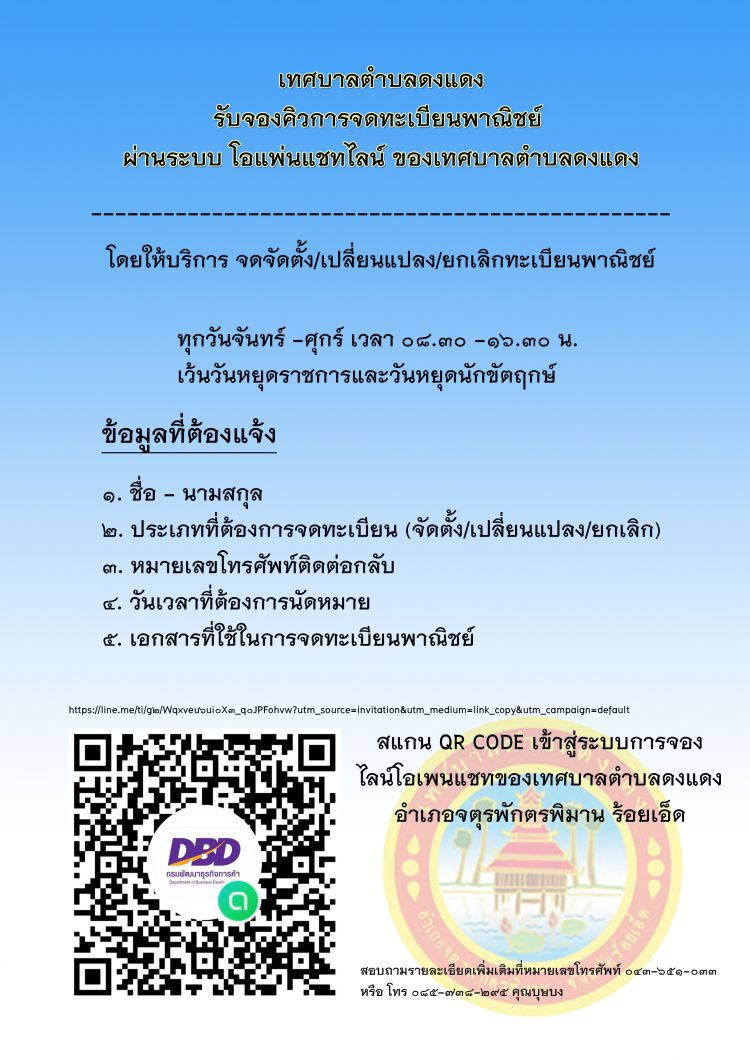 เทศบาลตำบลดงแดง รับจองคิวการให้บริการ การจดทะเบียนพาณิชย์ ผ่านระบบไลน์ ของเทศบาลตำบลดงแดง