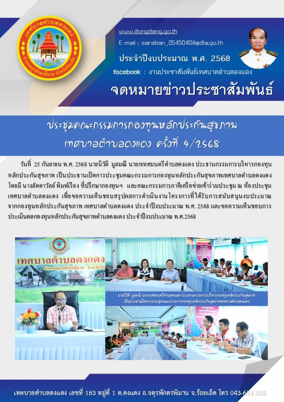 ประชุมคณะกรรมการกองทุนหลักประกันสุขภาพ เทศบาลตำบลดงแดง ครั้งที่ 4/2568[25 กันยายน 2568]