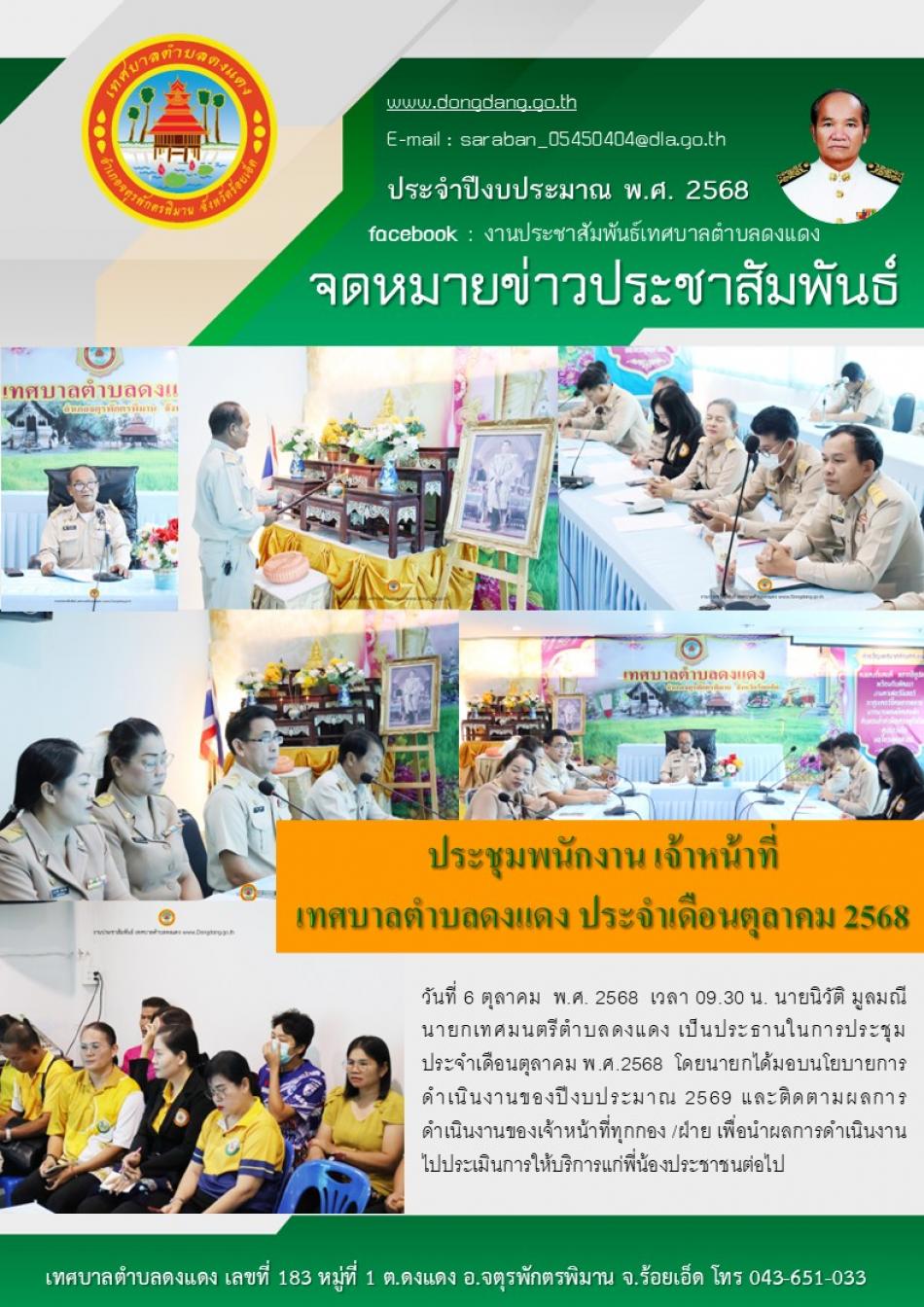 ประชุมพนักงานเทศบาลตำบลดงแดง ประจำเดือนพฤศจิกายน 2568 เวลา 09.30 น. ณ ห้องประชุมเทศบาลตำบลดงแดง [13 พฤศจิกายน 2568]
