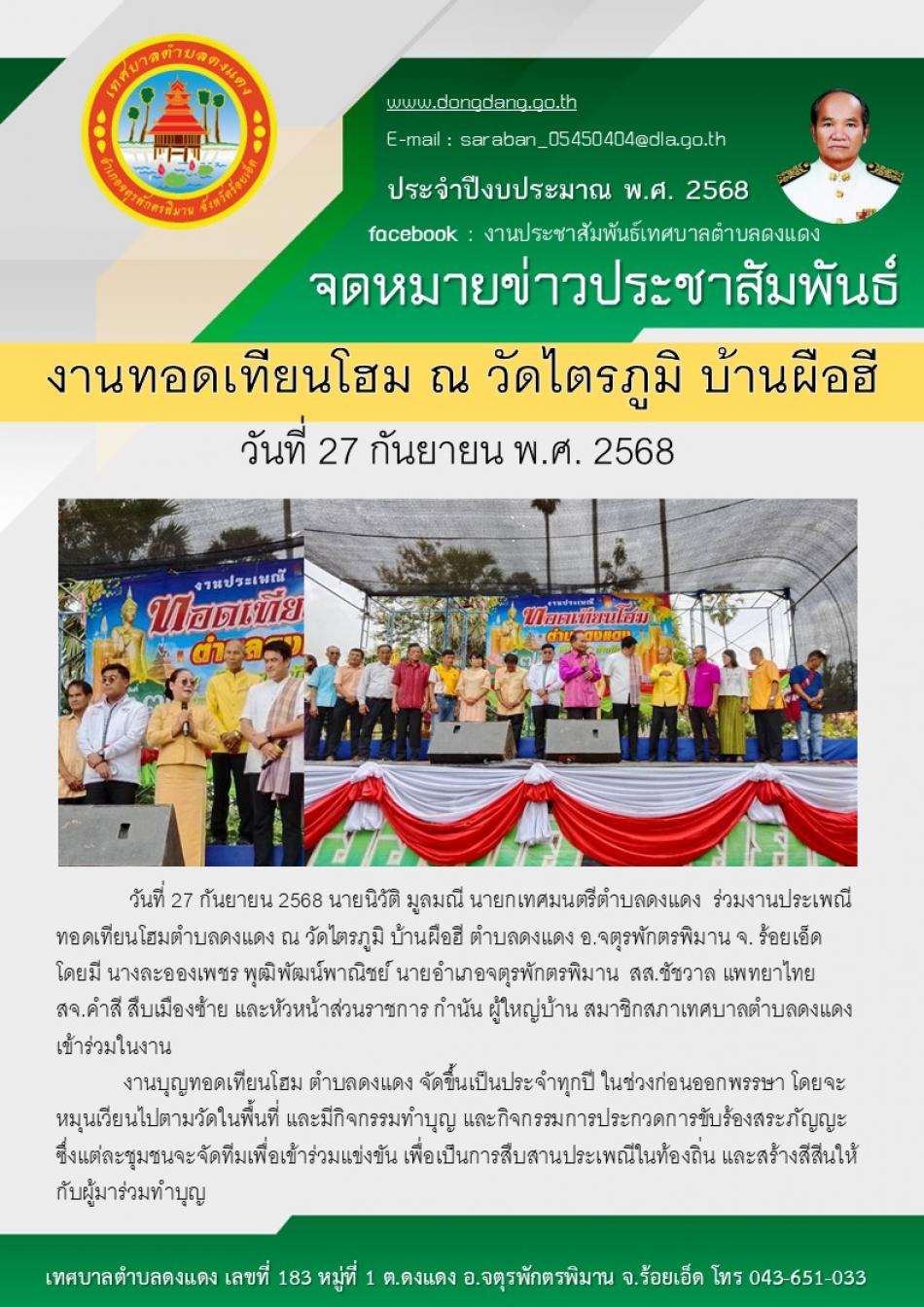 งานประเพณีทอดเทียนโฮมตำบลดงแดง ประจำปี 2568[30 กันยายน 2568]